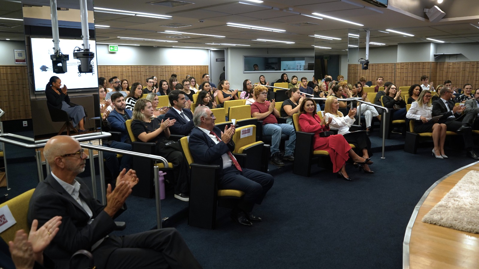 A vice-presidente de Mobilização Social e Relacionamento da Associação do Ministério Público do Rio Grande do Sul (AMP/RS), Julia Ilenir Martins, acompanhou a aula magna da Fundação Escola Superior do Ministério Público (FMP) na noite de quarta-feira, 11 de março, na sede da instituição.