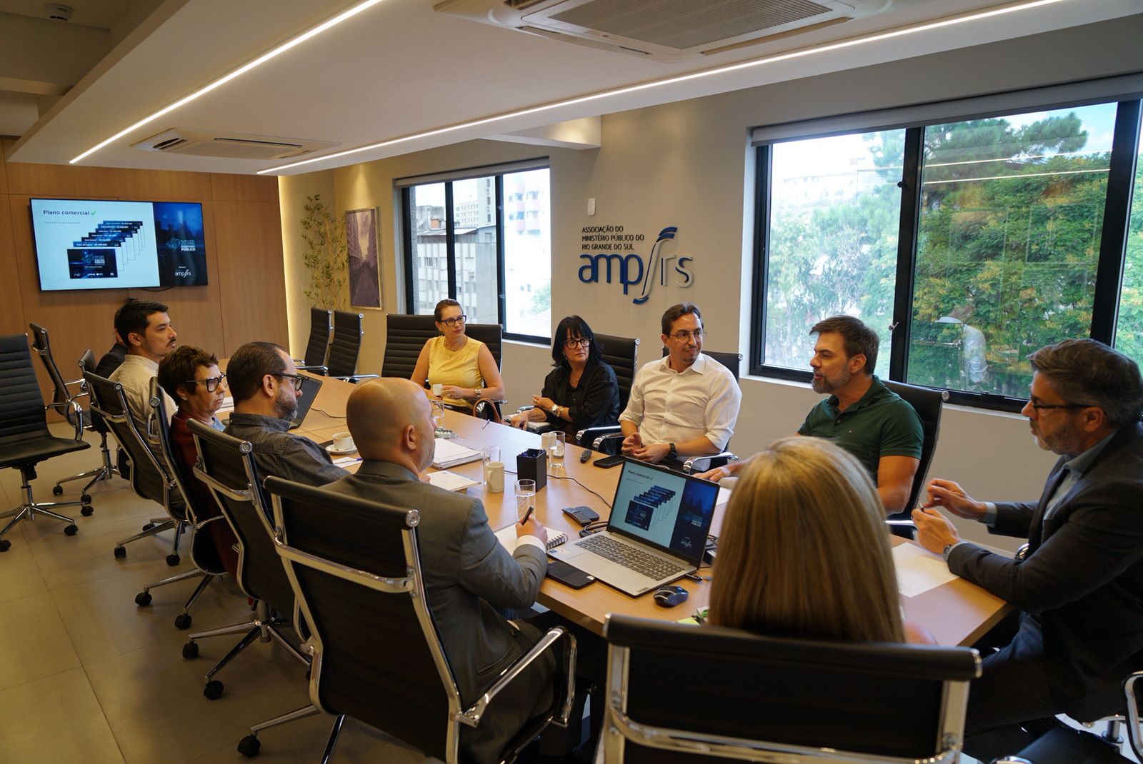 Participaram do encontro o presidente da AMP/RS, acompanhado do vice-presidente Administrativo e Financeiro, Henrique Rech Neto; da vice-presidente de Relações Institucionais, Karine Camargo Teixeira; da vice-presidente de Mobilização Social e Relacionamento, Júlia Ilenir Martins; da secretária-geral, Maria Cristina Moreira de Oliveira; do assessor da Presidência, Felipe Teixeira Neto; do CEO da AMP/RS, Valdir Bianchessi; e do gerente administrativo e financeiro, Juliano Quadrado, além de representantes do Cerimonial do Ministério Público e das empresas Cem Cerimônia e CORE Comunicação & Relacionamento.