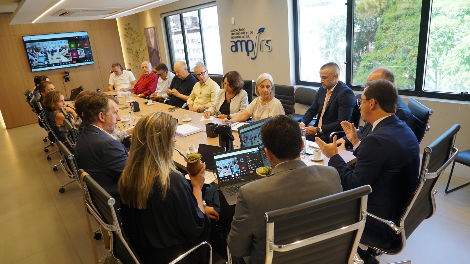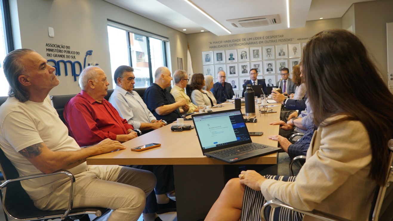 A Associação do Ministério Público do Rio Grande do Sul (AMP/RS) realizou, nesta sexta-feira, 6 de março, reunião de Diretoria Ampla em formato híbrido, com a participação de integrantes da Diretoria Executiva e de associados. O encontro, conduzido pelo presidente Fernando Andrade Alves, reuniu mais de 180 participantes e teve como objetivo debater pautas institucionais de interesse da classe.